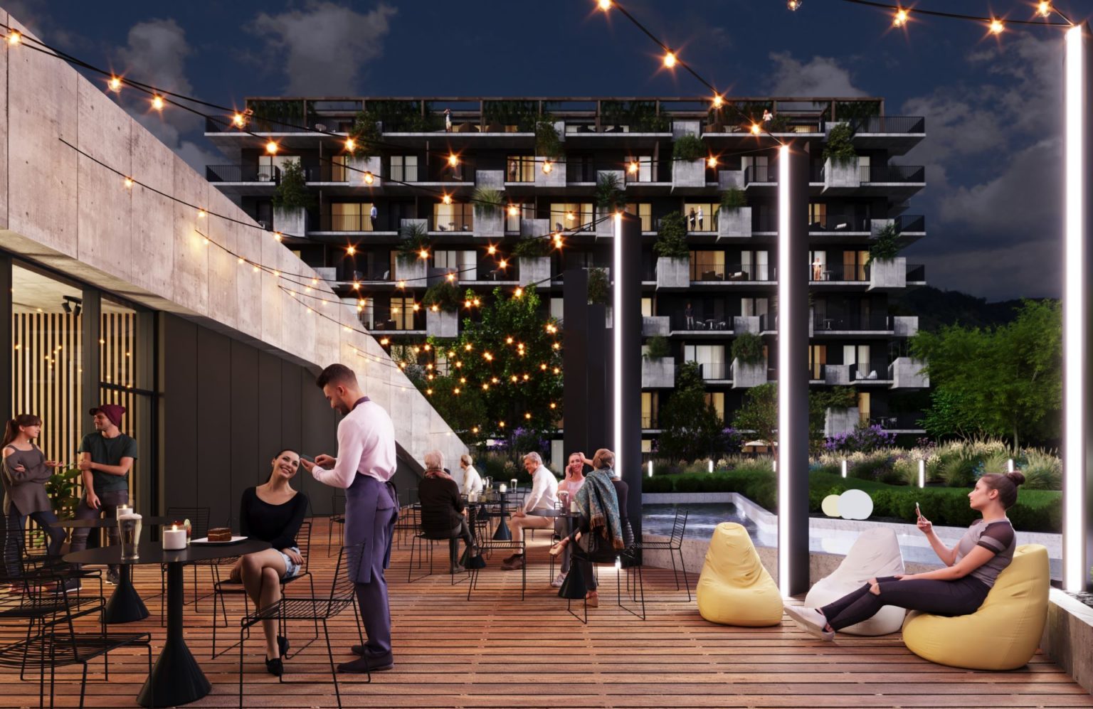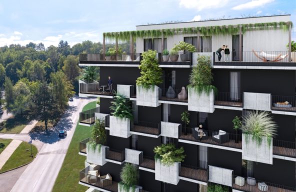 Na každom balkóne bude kvetináč s kúskom prírody, ktorá vytvorí zelenú fasádu s funkciou zadržiavania dažďovej vody. Okrem nich budeme dažďovú vodu na ďalšie využitie zachytávať aj do špeciálnych nádrží.
